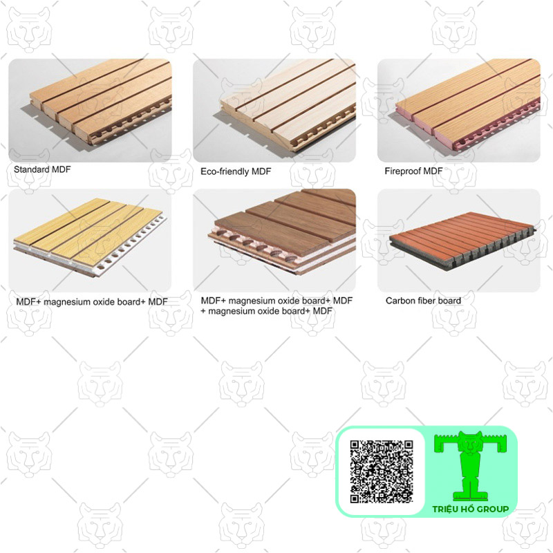 | 16 | Ván gỗ tiêu âm xẻ rãnh hoặc đục lỗ lõi MDF xanh chịu ẩm , hai mặt phủ Veneer Sồi hoặc Xoan. Dày 17mm | 800.000 |